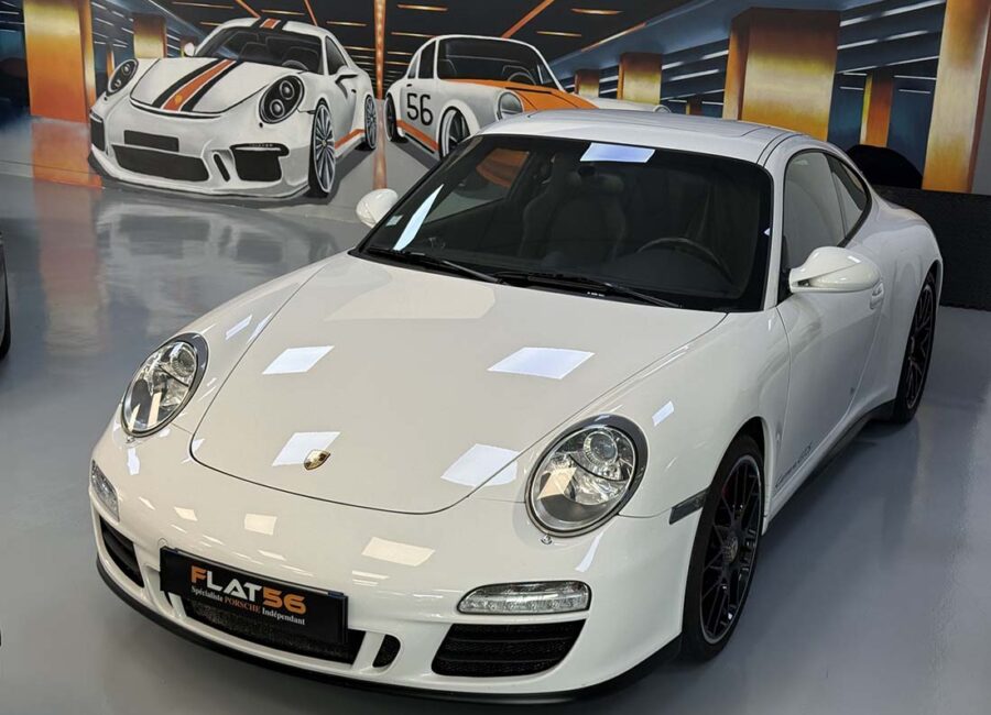 FLAT56, Spécialiste Porsche Indépendant de la région du Grand Ouest, vous propose à la vente cette Porsche 997 phase 2 3,8 408cv dans sa couleur « blanc Carrara » intérieur cuir et alcantara étendu noir.